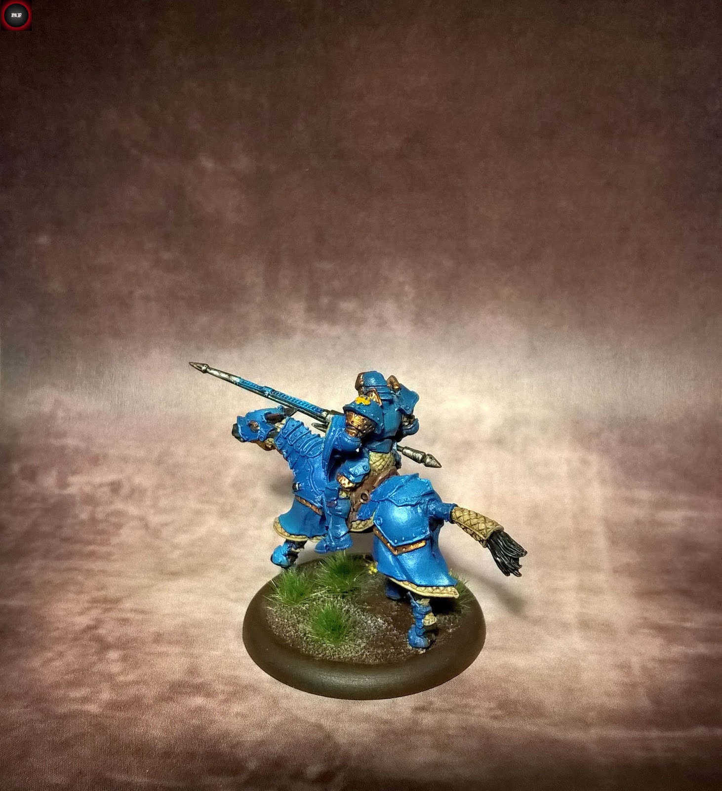 długo nic nie wrzucałem jeśli o malowanie chodzi, a bo od początku roku męczyłem się z ciężką kawalerią dla Cygnaru jaką są Storm Lances. Jestem całkiem zadowolony z rezultatów, chociaż wiem, że jakiś wyczyn malarski to to nie jest, ale mimo wszystko będą się całkiem przyjemnie prezentować na polu walki, a tak szczerze to nie miałem do nich serca przez co nie potrafiłem przysiąść do nich porządnie i pomalować bardziej hmmm finezyjnie. Tak czy siak mam nadzieję, że się Wam spodobają.